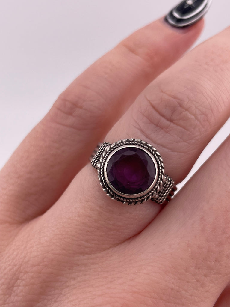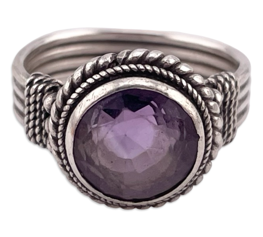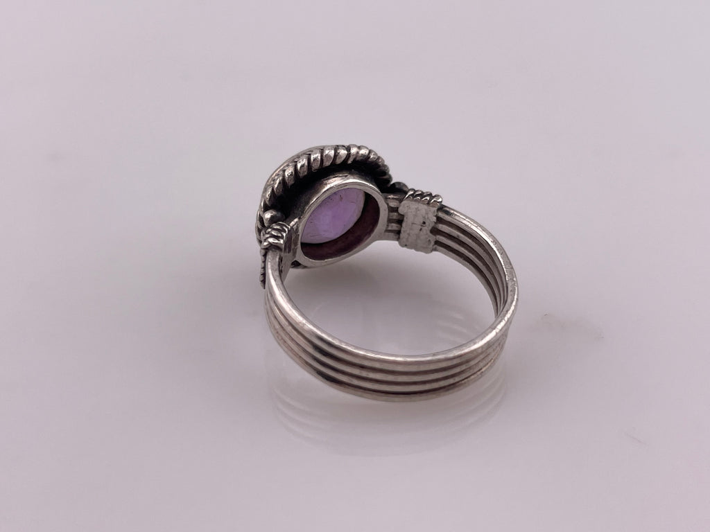 The silver is scratched from wear and storage, as is typical with pre-owned jewelry. This ring has tarnishing and patina that may not come off when polished.