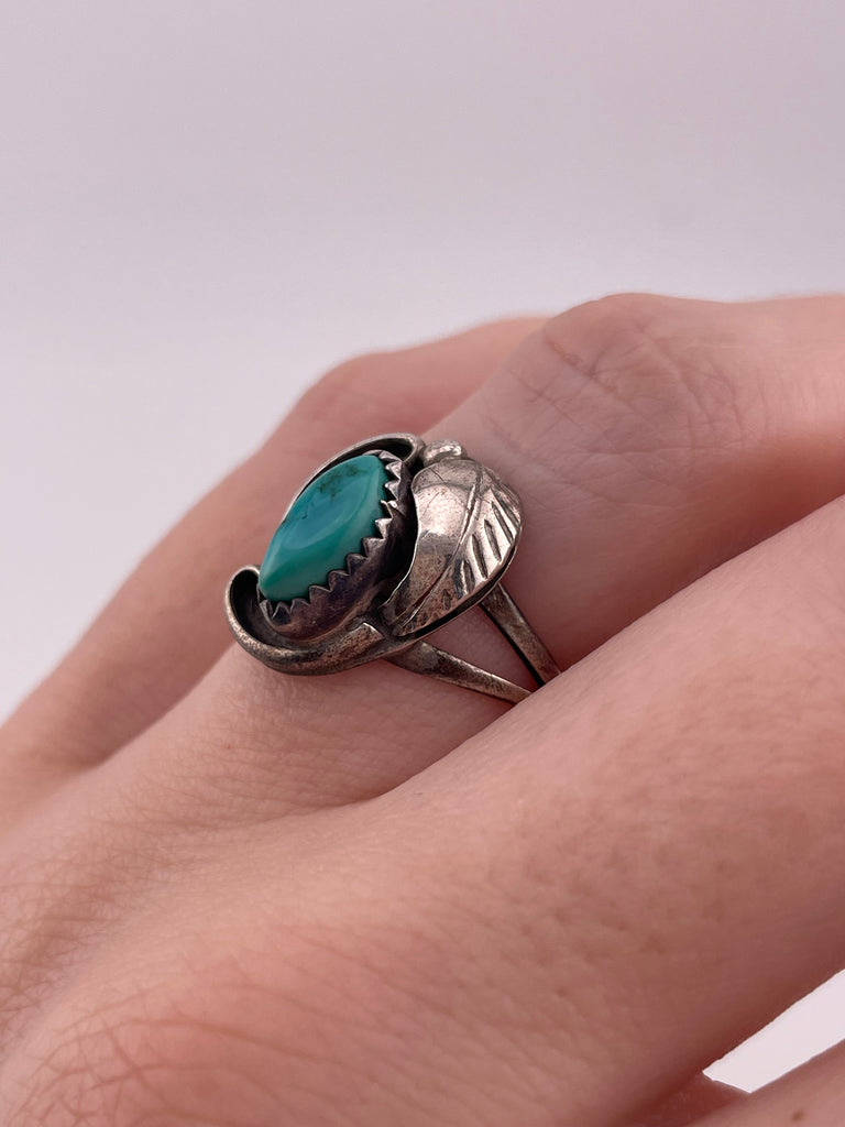 size 7 sterling silver turquoise leaf ring
