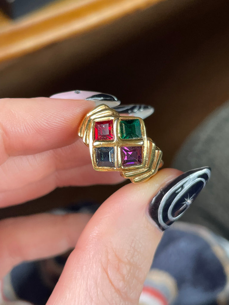 The silver is scratched from wear and storage, as is typical with pre-owned jewelry. This ring has tarnishing and patina that may not come off when polished.