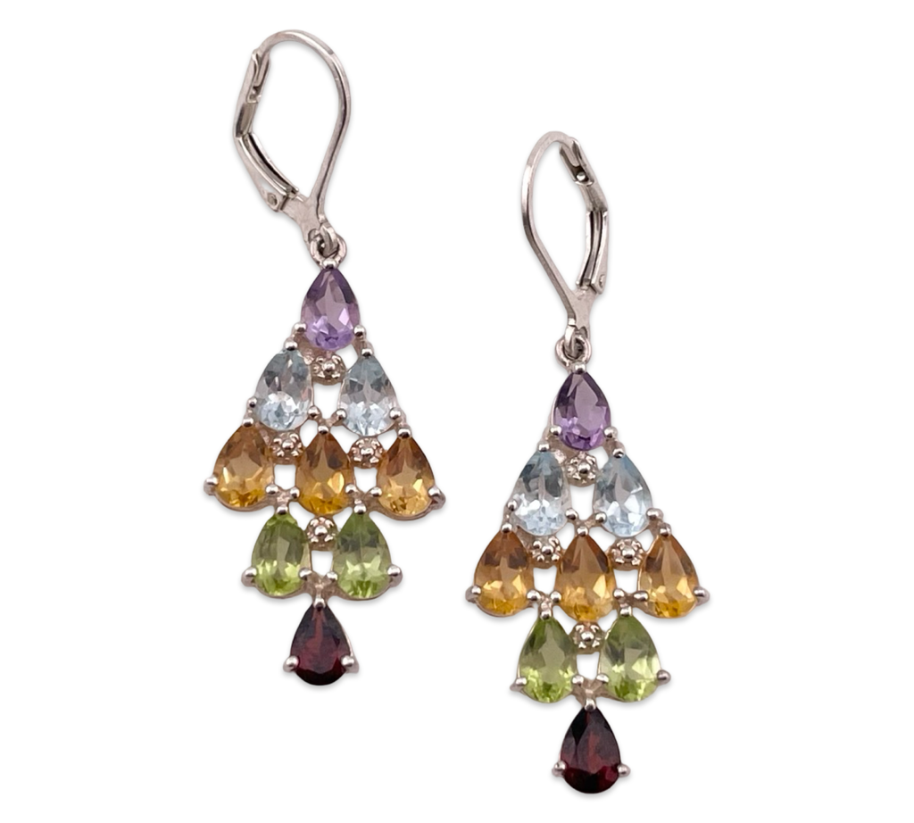 sterling silver colorful multi-gemstone dangle earrings