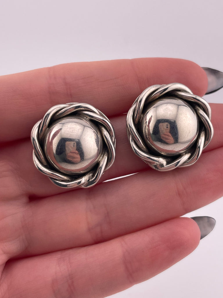 The silver is scratched from wear and storage, as is typical with pre-owned jewelry. This piece of silver has tarnishing and patina that may not come off when polished.