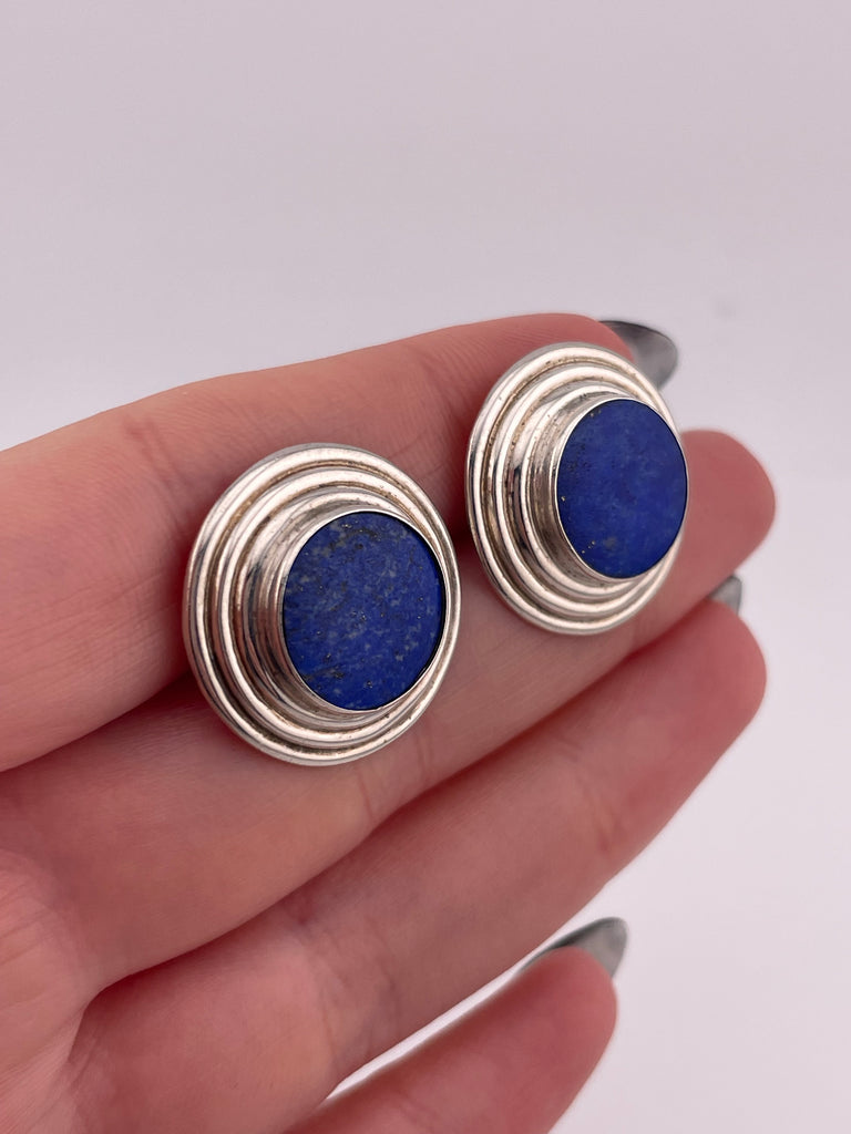 sterling silver round lapis post earrings