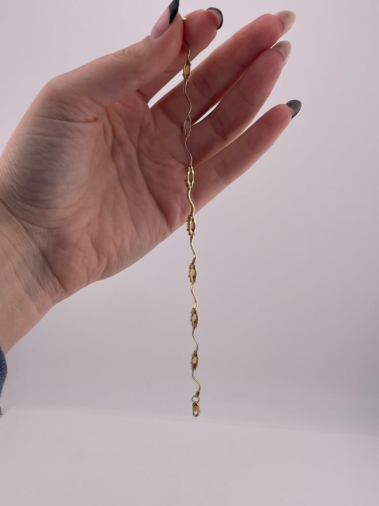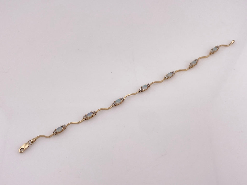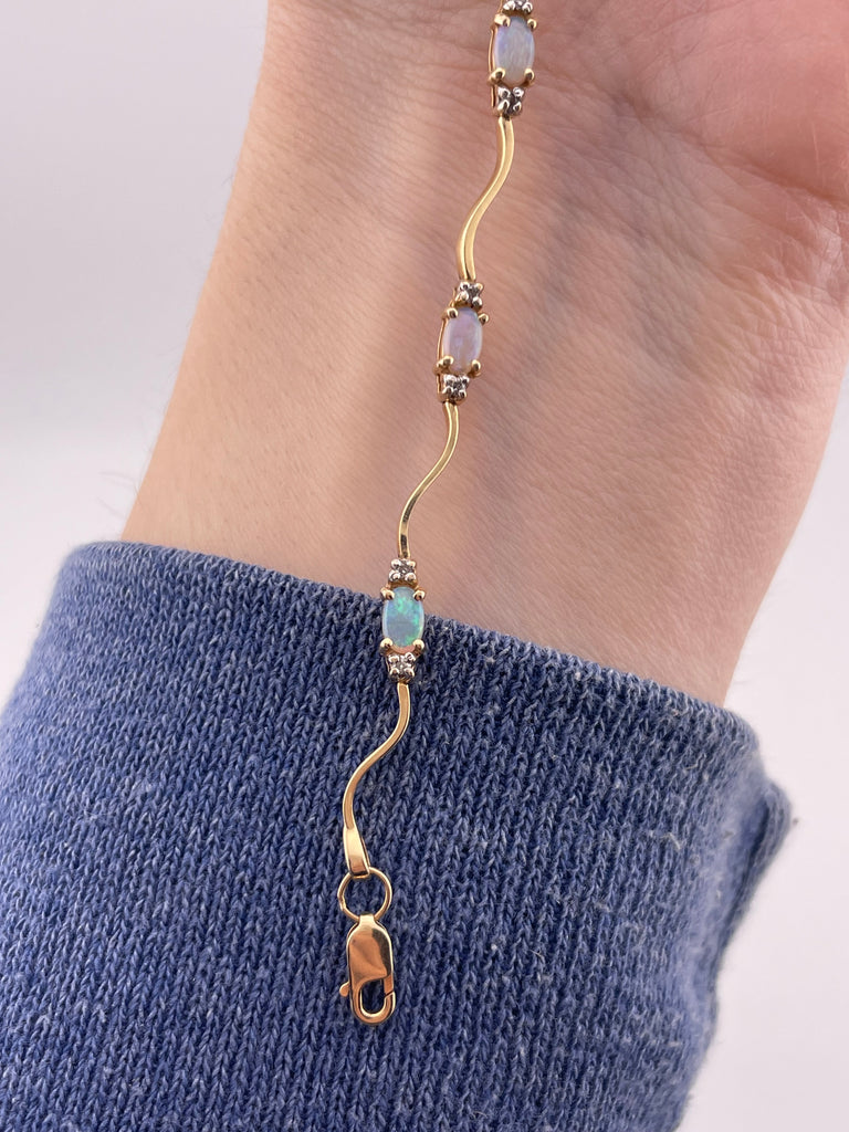 14k yellow gold opal & diamond squiggle link bracelet