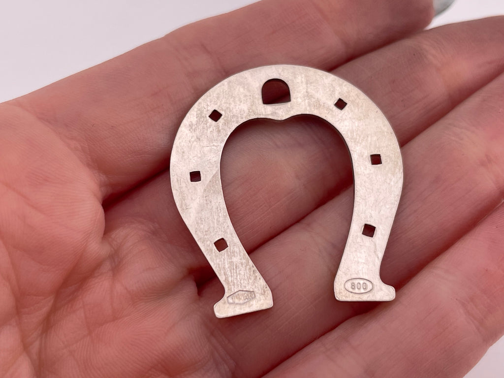 This pendant has scratches to the silver from previous wear, and tarnishing that may not come off when polished.