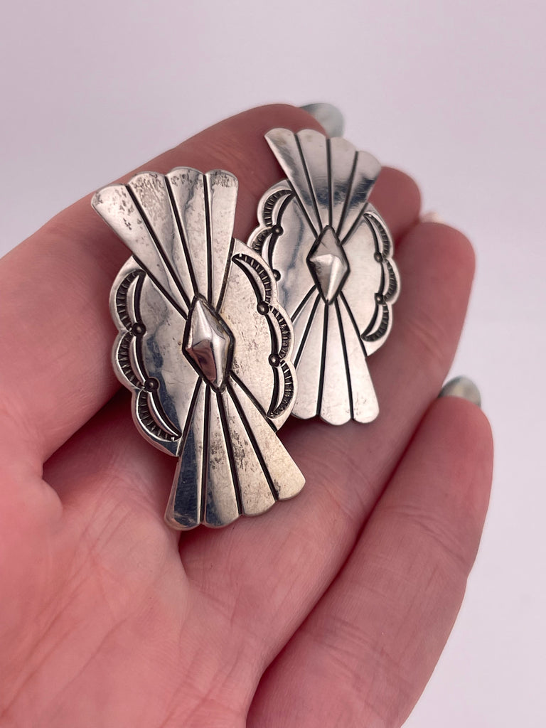 sterling silver Navajo Larry Sandoval concho clip on earrings