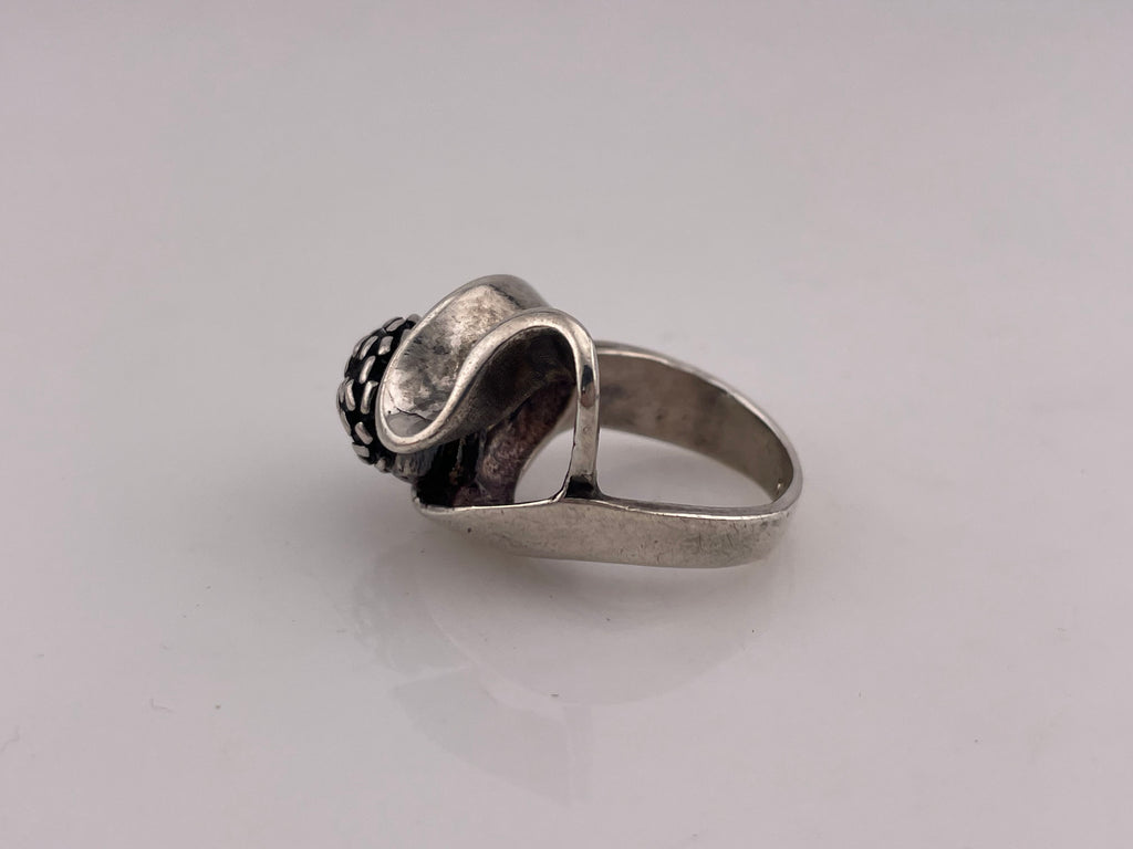 The silver is scratched from wear and storage, as is typical with pre-owned jewelry. This piece of silver has tarnishing and patina that may not come off when polished.