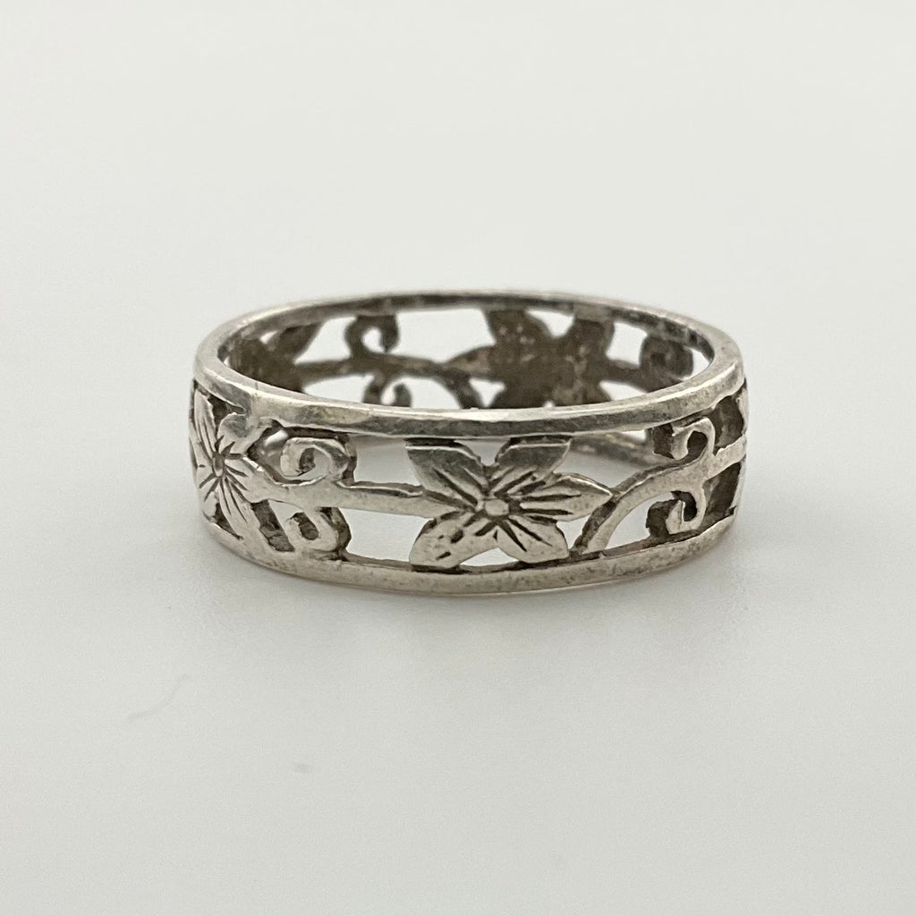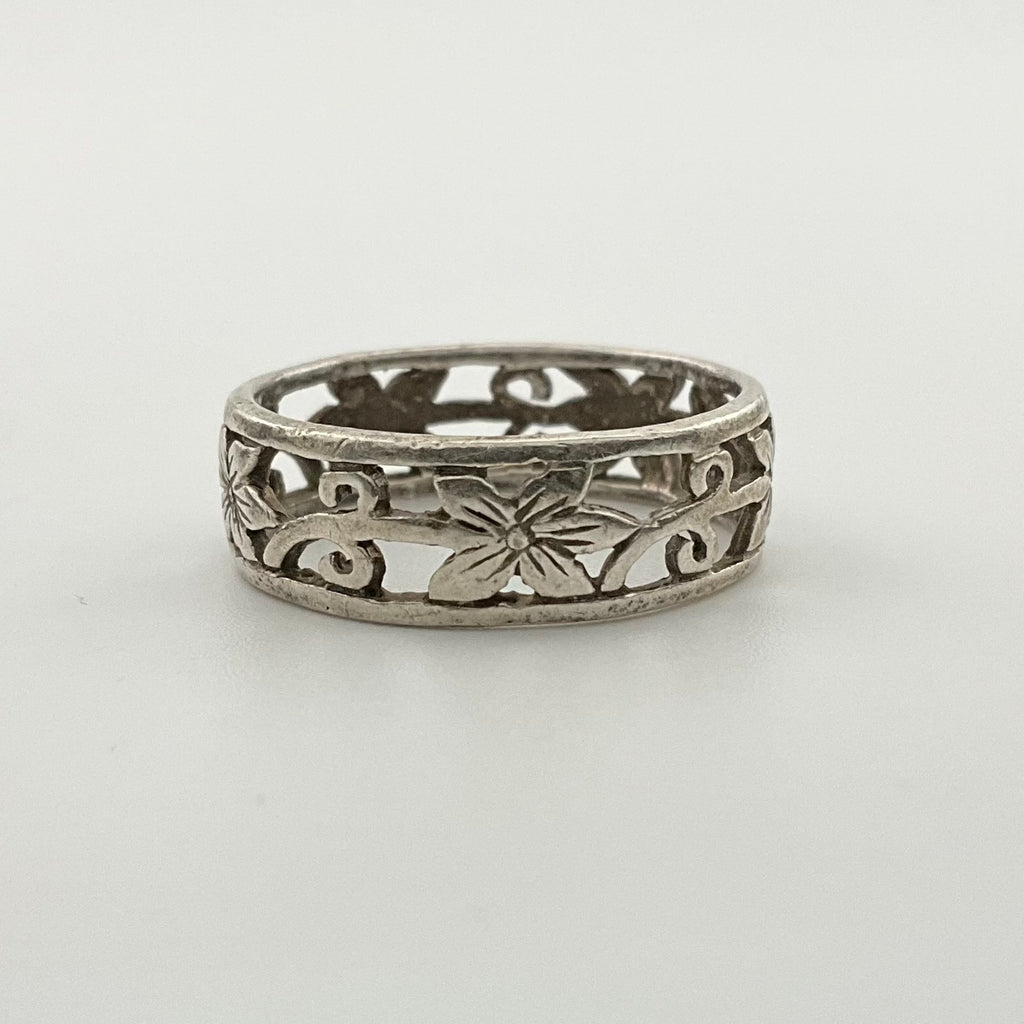 The silver is scratched from wear and storage, as is typical with vintage jewelry. This ring has tarnishing and patina that may not come off when polished.