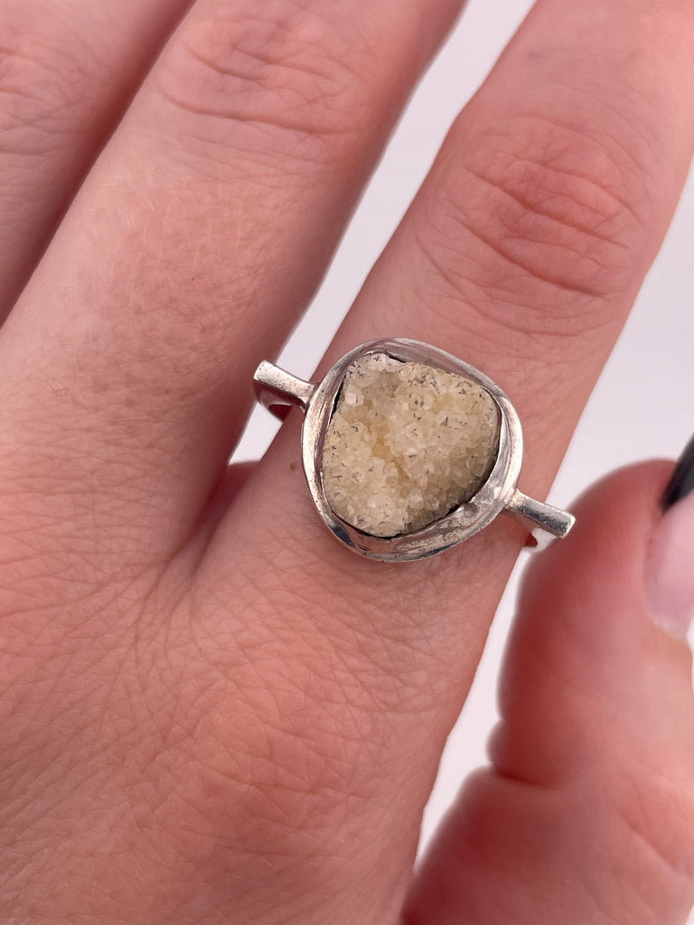 The silver is scratched from wear and storage, as is typical with pre-owned jewelry. This ring has tarnishing and patina that may not come off when polished.