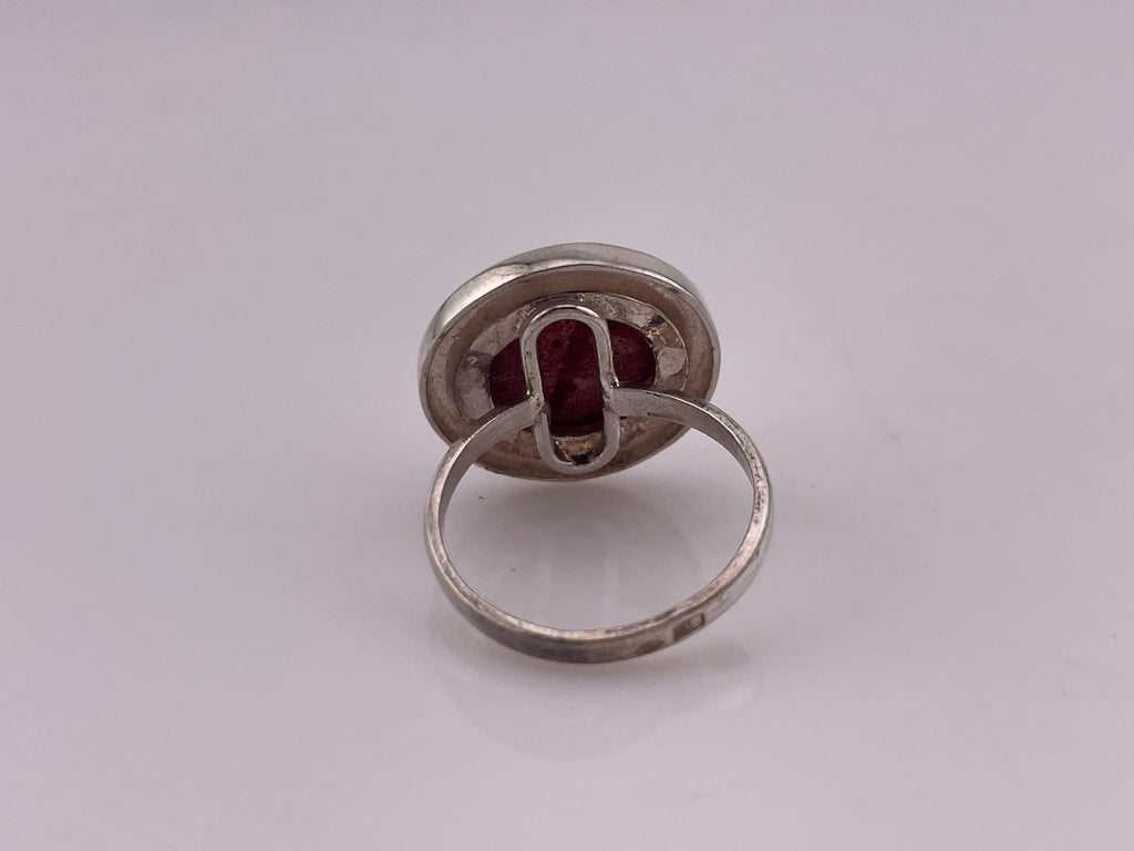 The silver is scratched from wear and storage, as is typical with pre-owned jewelry. This ring has tarnishing and patina that may not come off when polished.