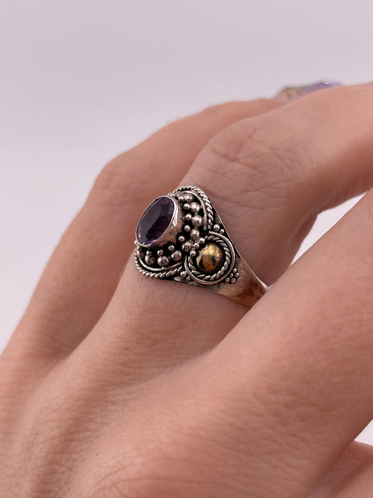 size 7.5 sterling silver faceted amethyst gold wash detail ring