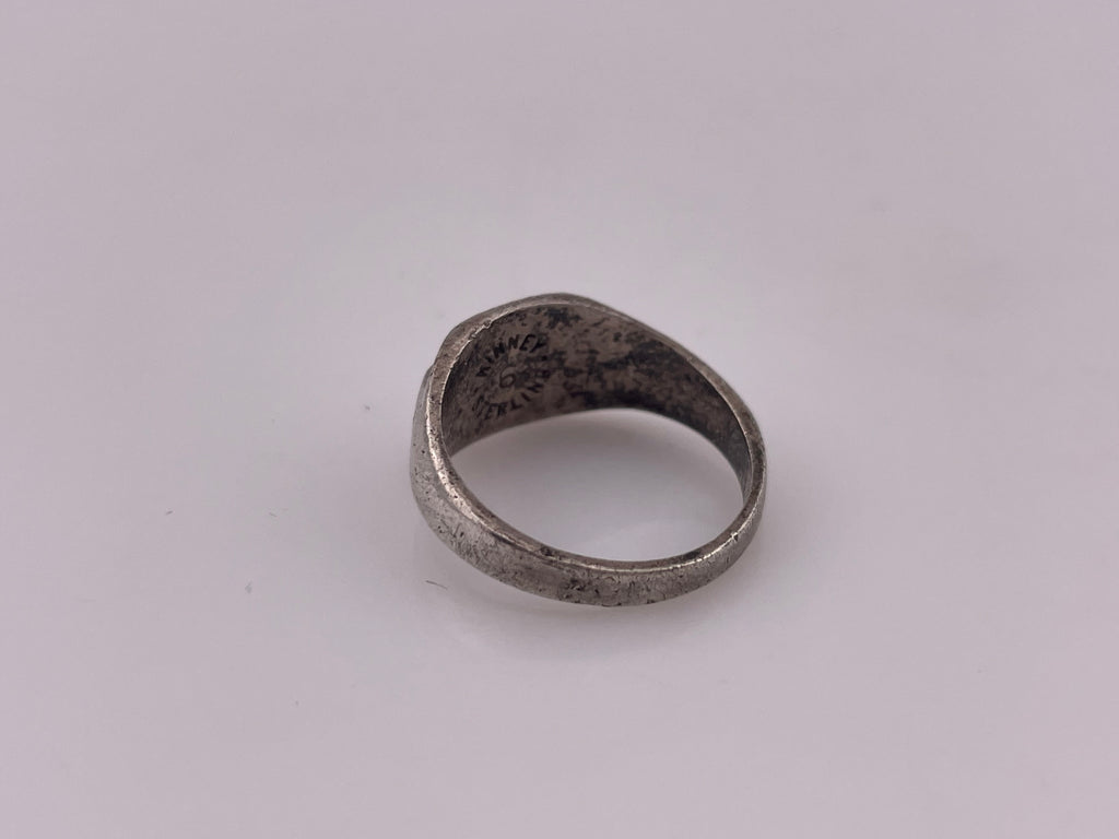 The silver is scratched from wear and storage, as is typical with pre-owned jewelry. This ring has tarnishing and patina that may not come off when polished.
