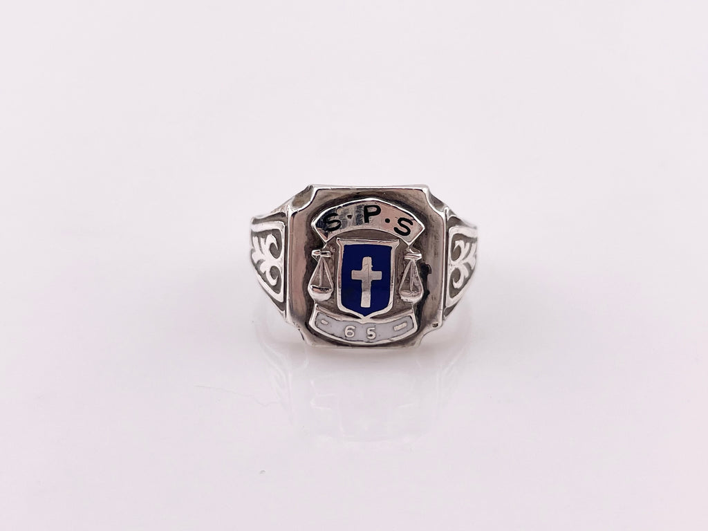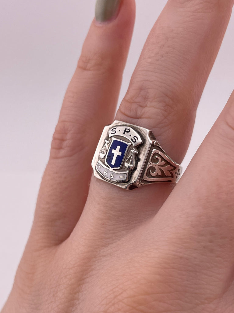 size 7.5 sterling silver S.P.S. school ring