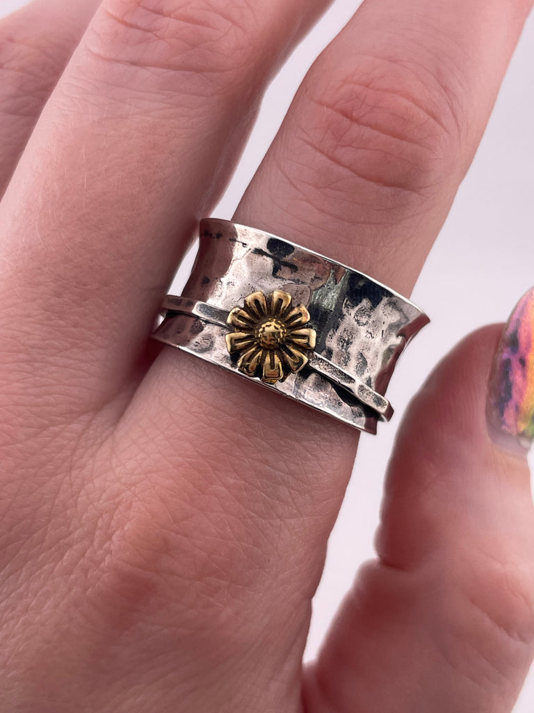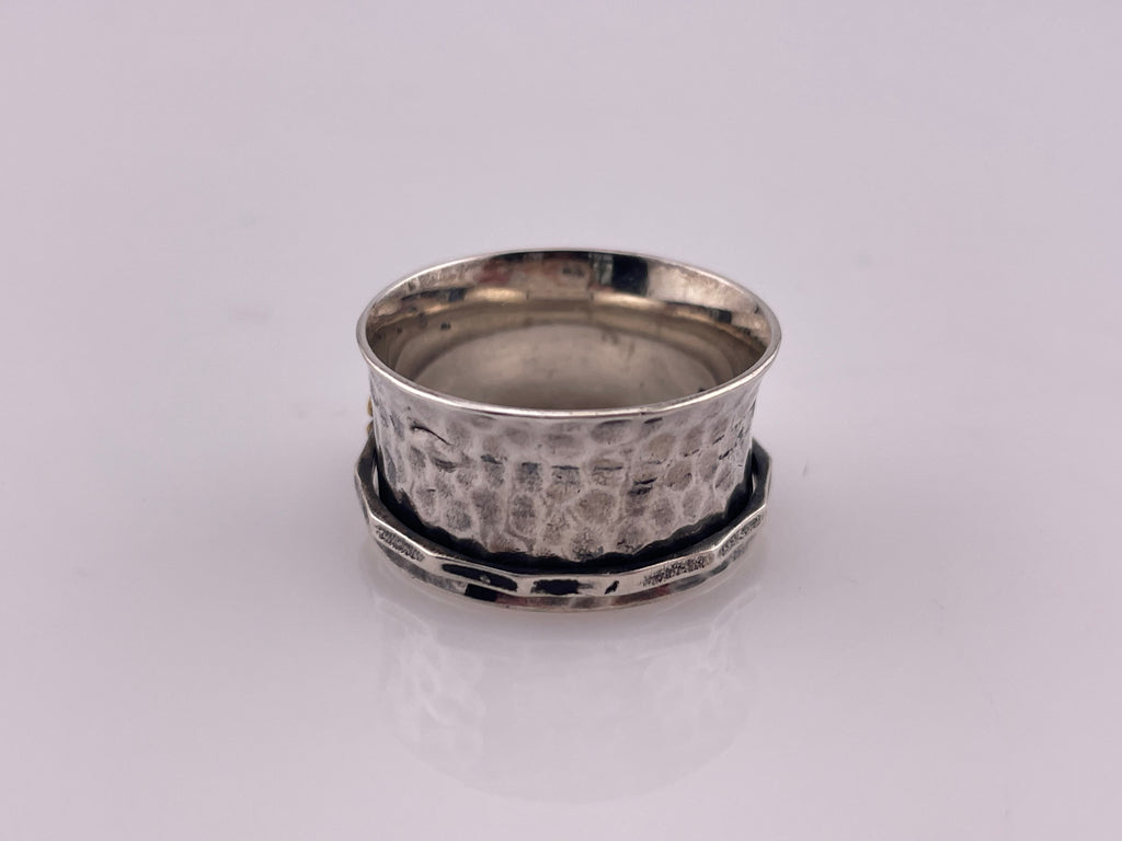 The silver is scratched from wear and storage, as is typical with pre-owned jewelry. This ring has tarnishing and patina that may not come off when polished.