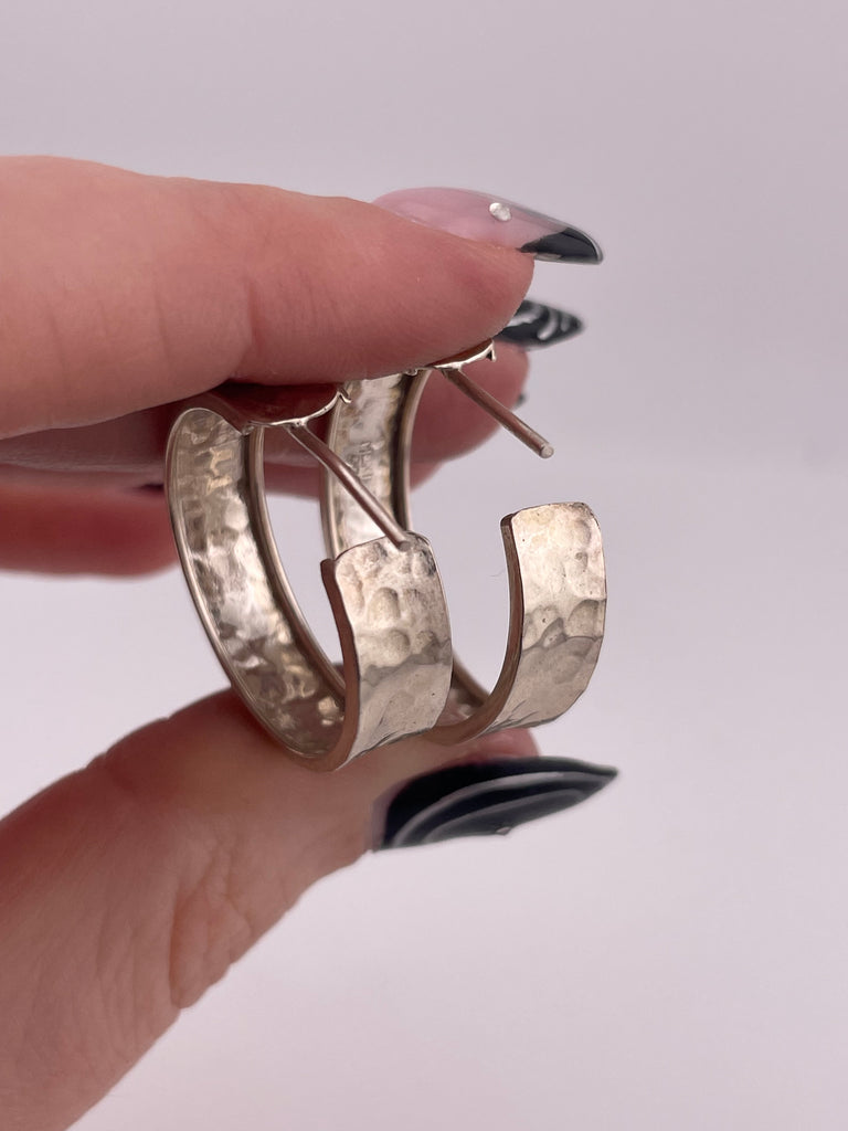 sterling silver 1" hammered hoop post earrings