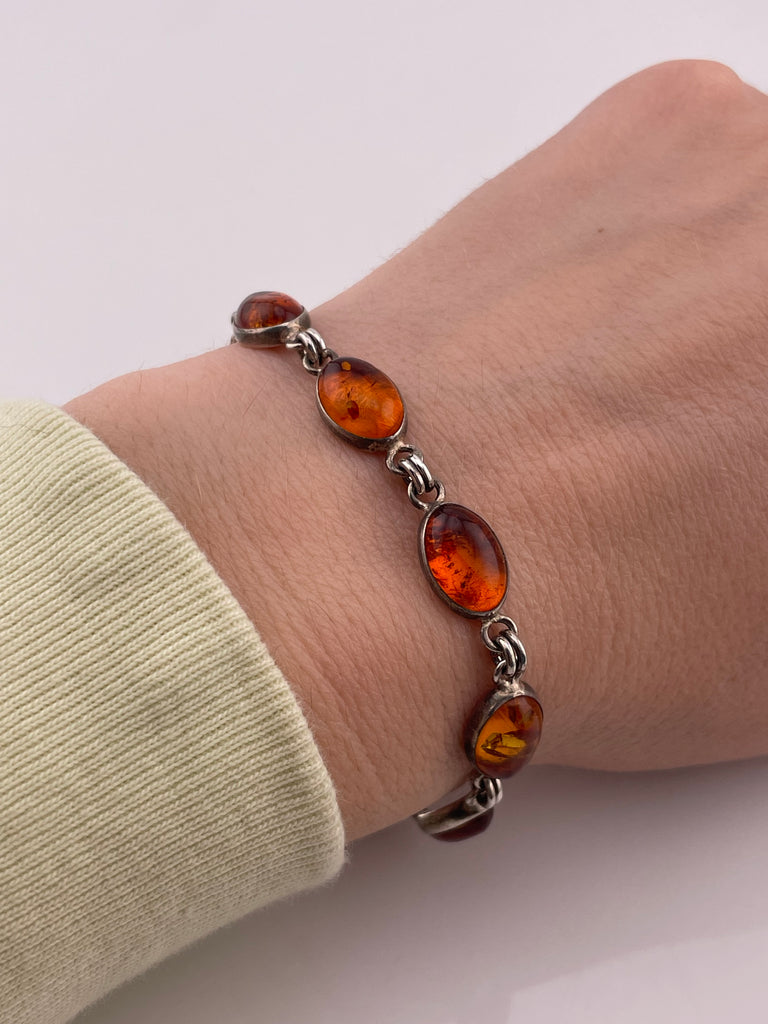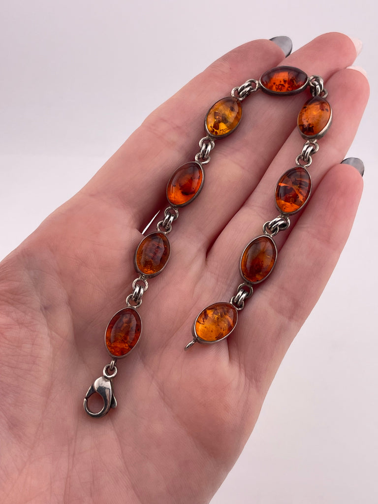 sterling silver 7 1/2" amber link bracelet