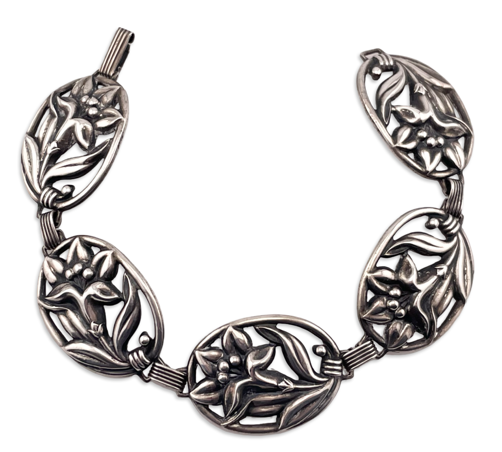 sterling silver 7 1/8" flower link bracelet