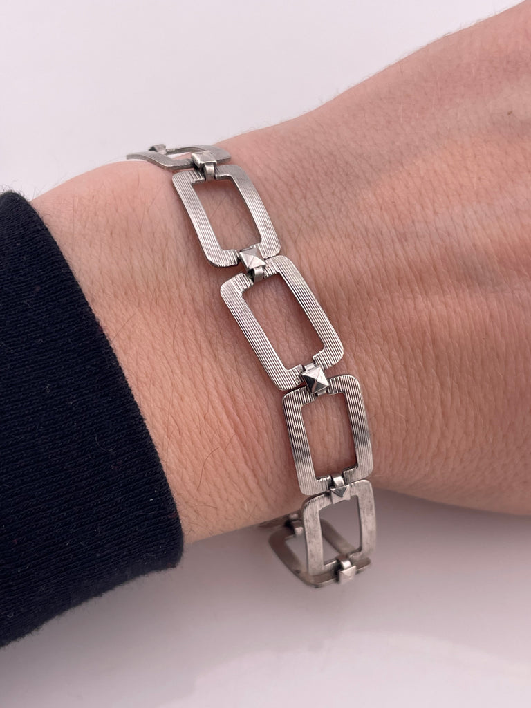 The silver is scratched from wear and storage, as is typical with pre-owned jewelry. This jewelry has tarnishing and patina that may not come off when polished.