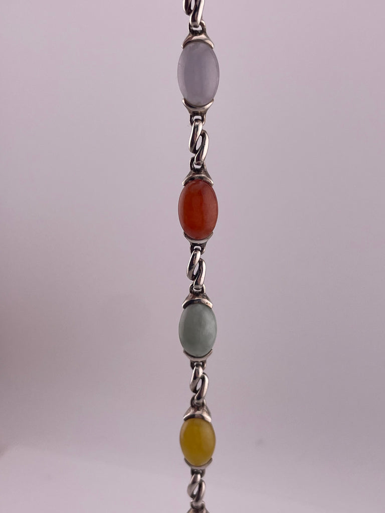 sterling silver 7-1/4" multi-color jade link bracelet