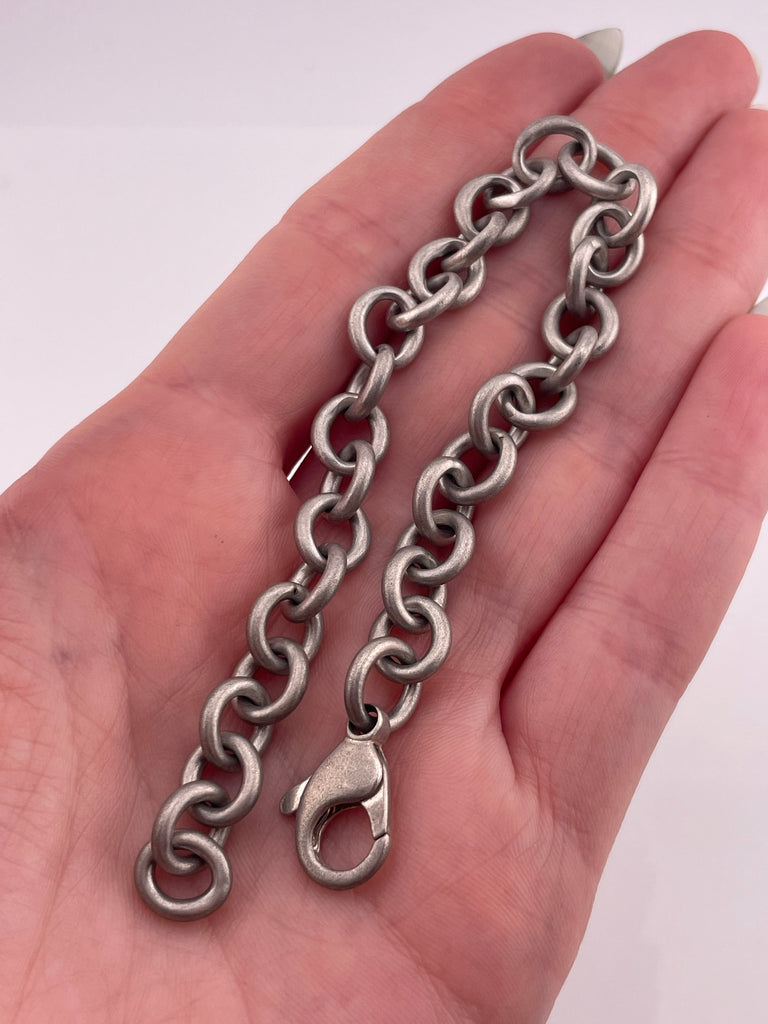 The silver is scratched from wear and storage, as is typical with pre-owned jewelry. This jewelry has tarnishing and patina that may not come off when polished.