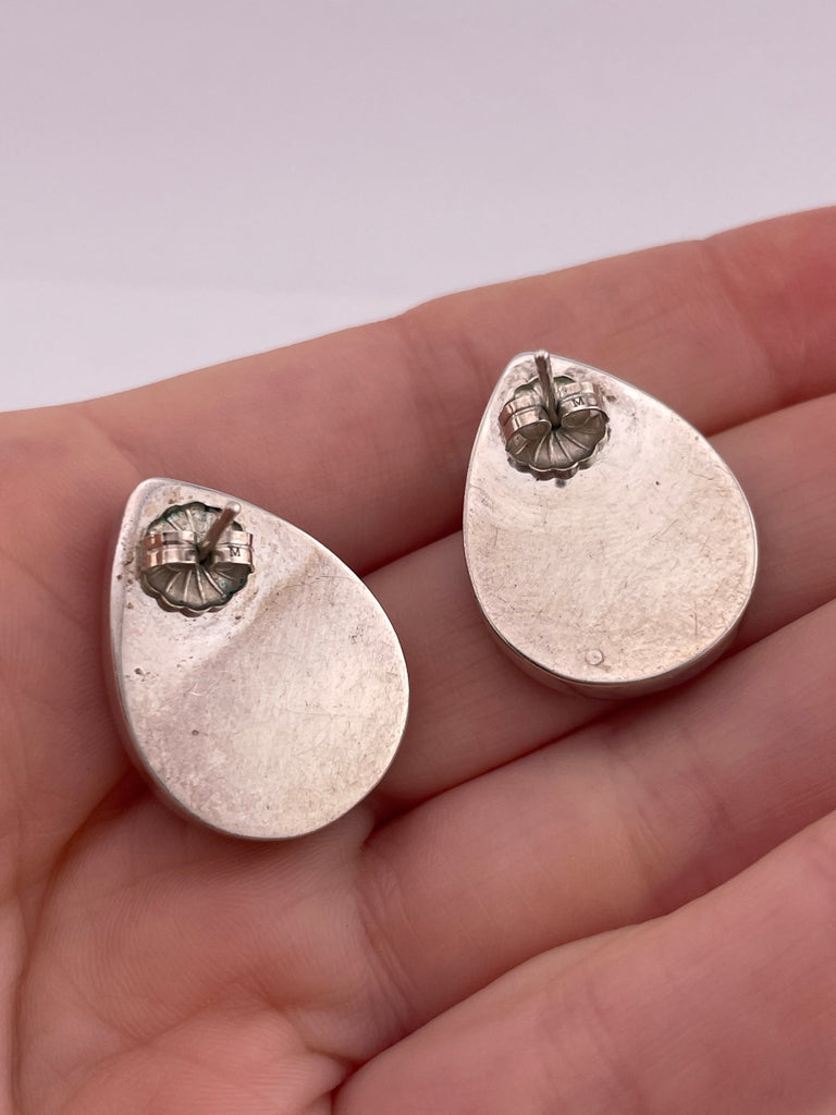 sterling silver chrysocolla & mother of pearl inlay teardrop post earrings