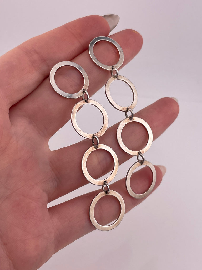 sterling silver 2-7/8" circles post dangle earrings