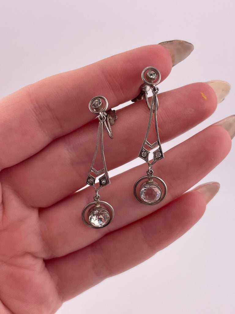 sterling silver rhinestone screw-back earrings