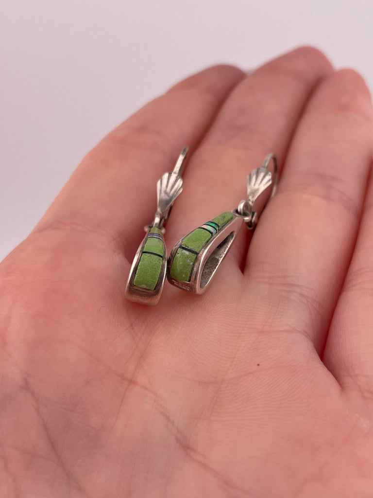 sterling silver gaspeite jet synthetic opal lever-back hook dangle earrings