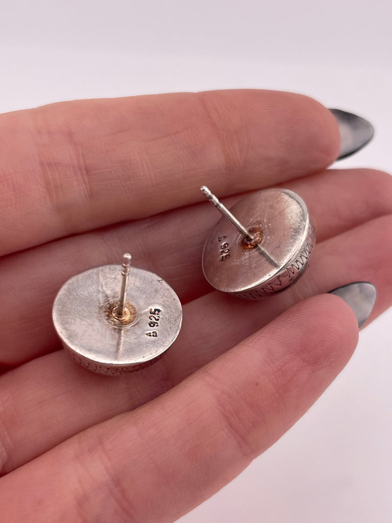 sterling silver etched dome post earrings