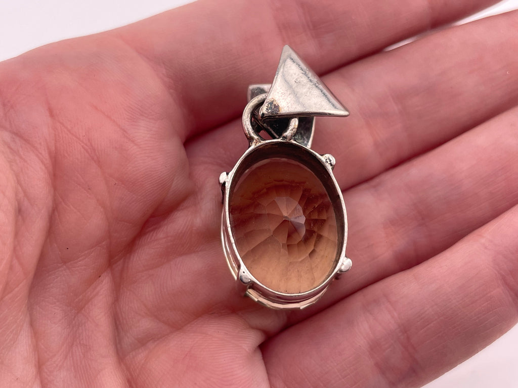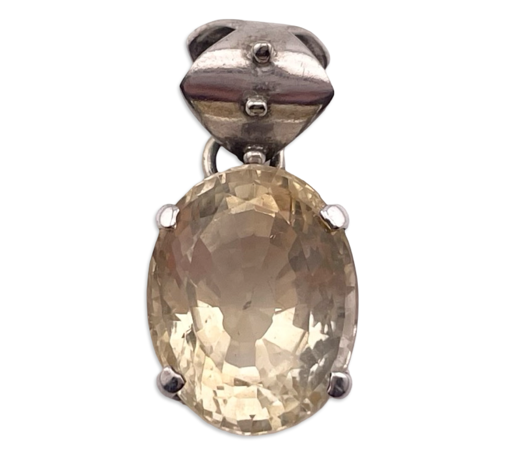 sterling silver large faceted citrine pendant