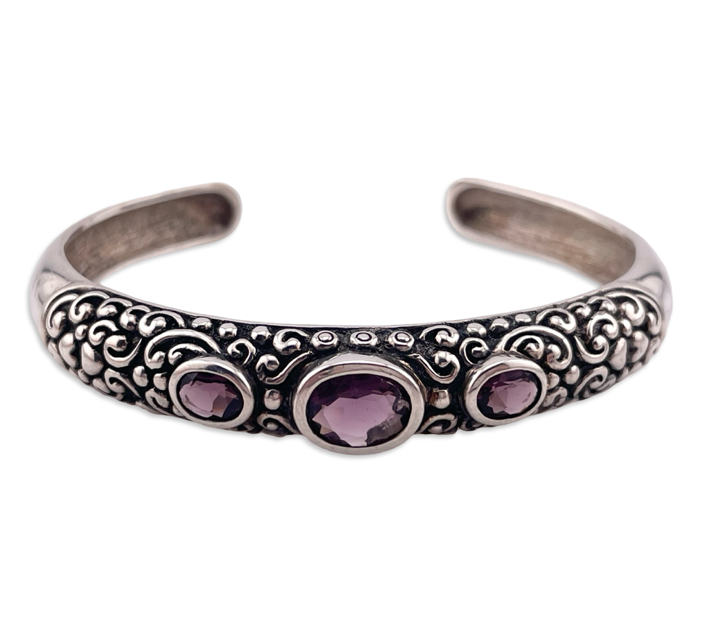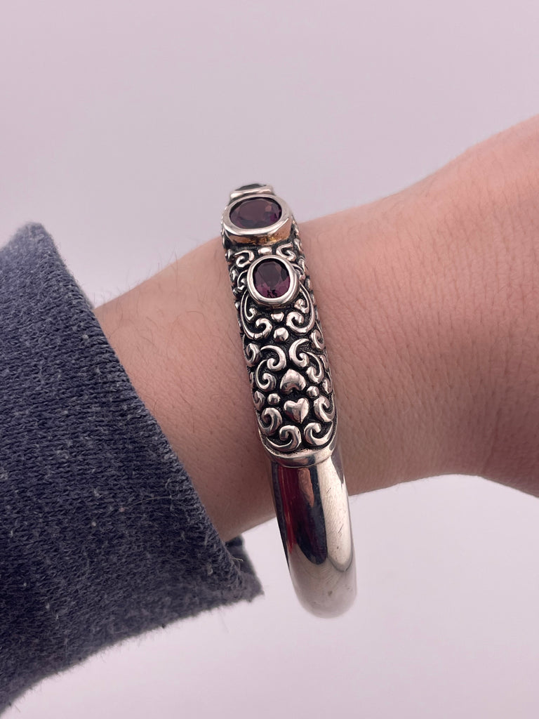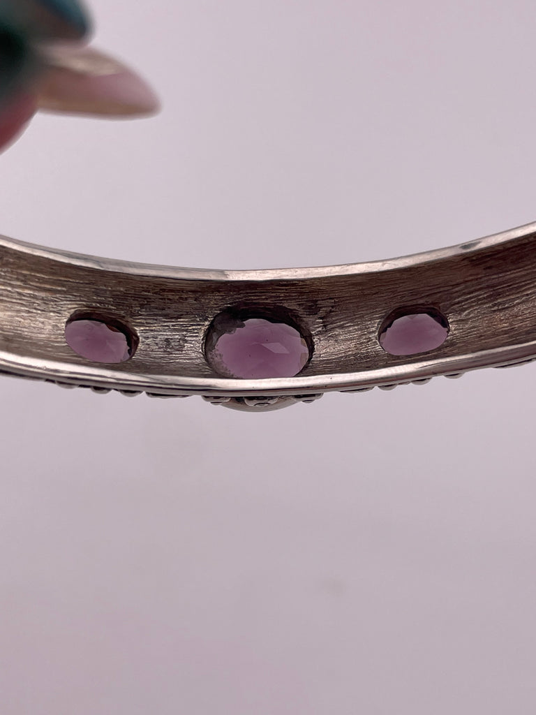 sterling silver large faceted purple glass cuff bracelet