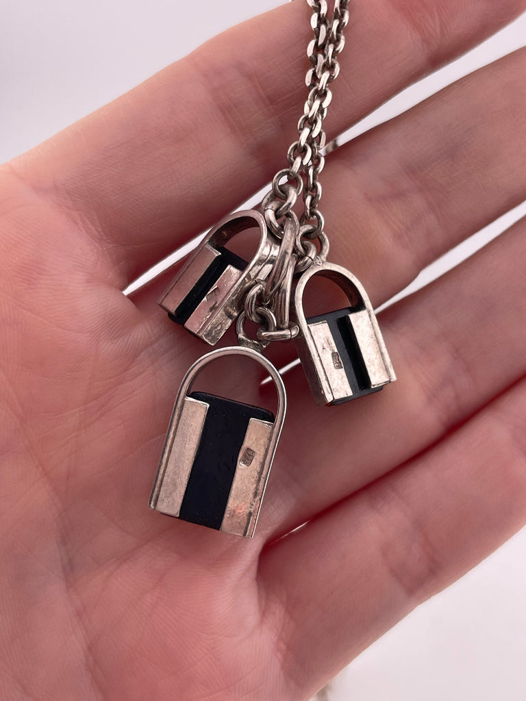 The silver is scratched from wear and storage, as is typical with pre-owned jewelry. This item has tarnishing and patina that may not come off when polished.