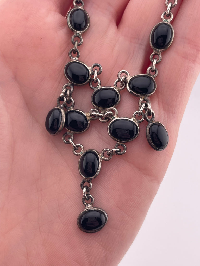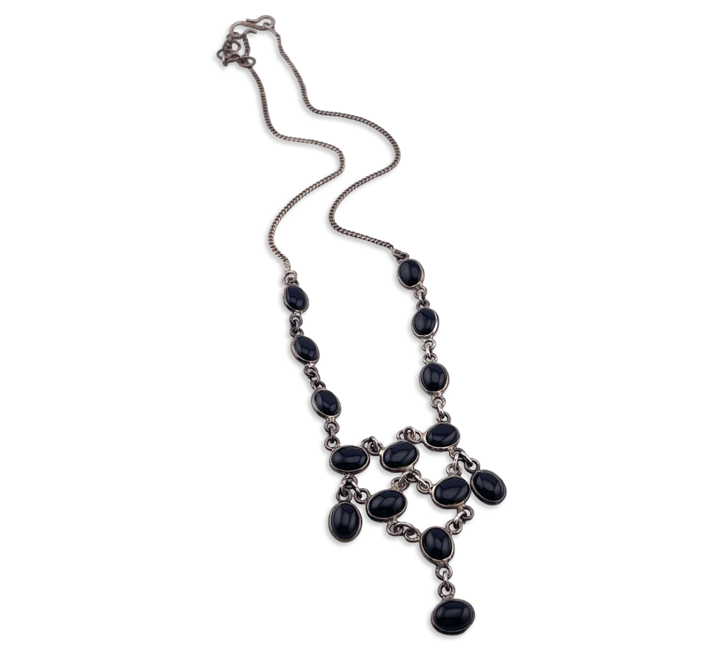 sterling silver 16-1/2" to 17-1/2" onyx chandelier necklace