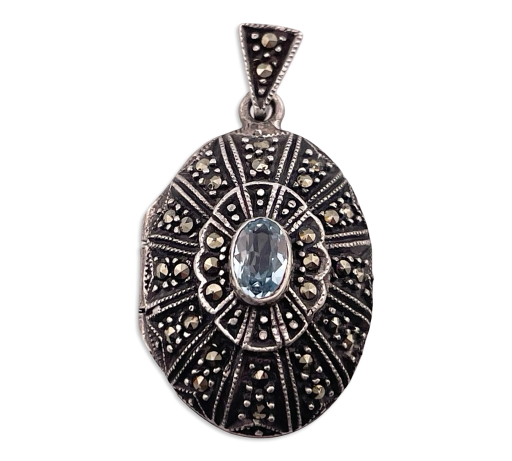 This pendant has scratches to the silver from previous wear, and tarnishing that may not come off when polished.