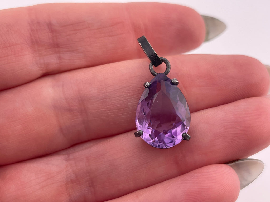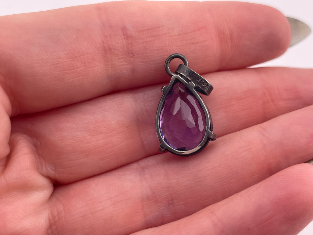 This pendant has scratches to the silver from previous wear, and tarnishing that may not come off when polished.
