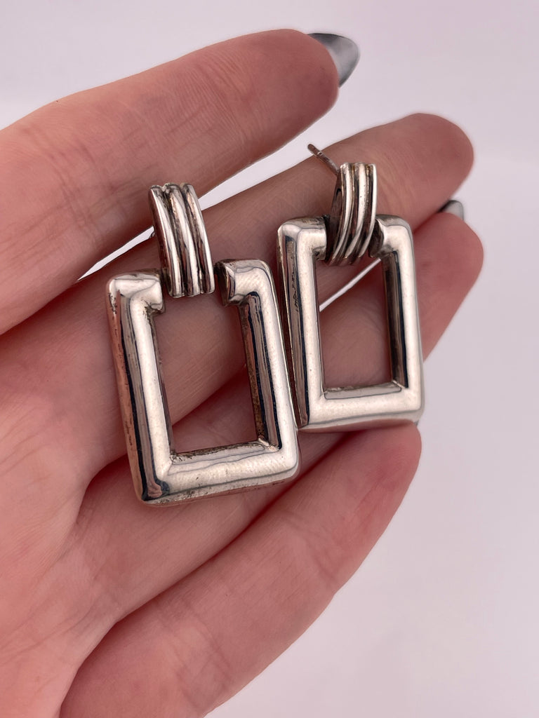 sterling silver rectangle door-knocker post earrings