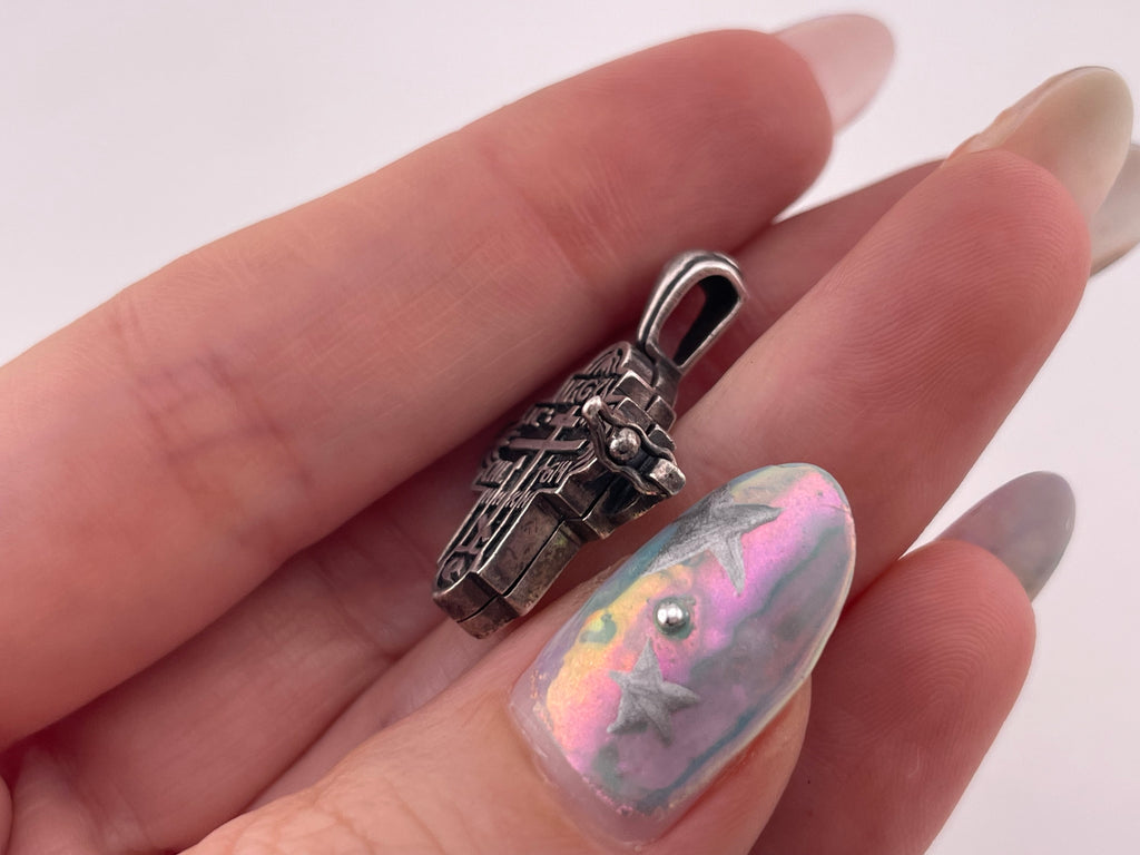 sterling silver religious cross box compartment pendant
