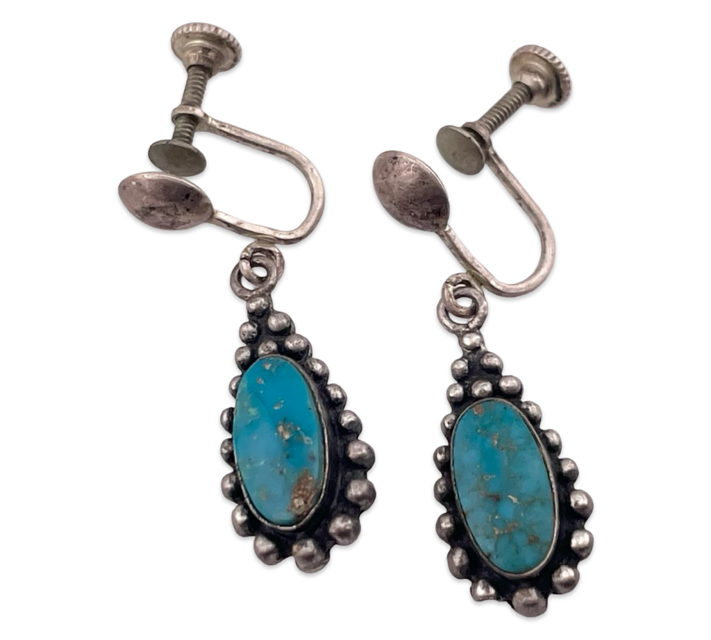 sterling silver turquoise screw-back dangle earrings